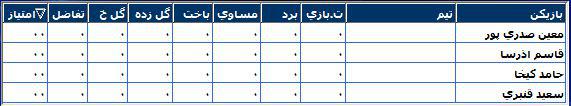 در پایان مسابقات گروهی با اینکه با مصطفی تازه روز هم امتیاز بود و بازی رو در رو هم ۳-۳ مساوی شده بود به دلیل تفاضل گل کمتر حذف شد.